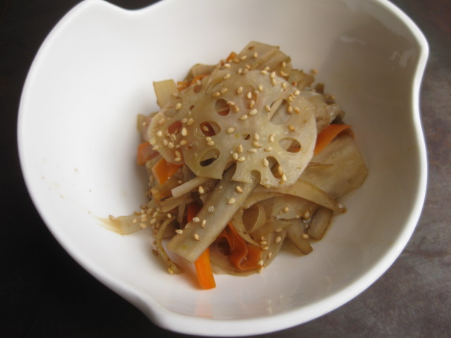 • Kinpira - Sauteed and Simmered Shredded Root Vegetables - Carrot, Gobo (Burdock Root) and Renkon (Lotus Root)