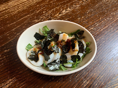 - Ika Pirikara Ae - Cooked Squid and Japanese Mustard Green Mixed with Spicy Ginger Garlic Sauce with Nori Seaweed Flakes (contain chili pepper, sesame oil, and scallion) [Pictured]